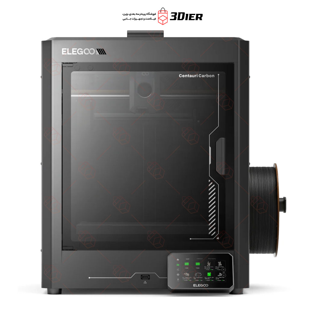 پرینتر سهبعدی Elegoo Centauri Carbon یک چاپگر FFF/FDM جدید با فناوری پیکرساخت افزایشی فیلامنت است. این دستگاه اولین پرینتر CoreXY کاملاً محصور (Fully Enclosed) شرکت Elegoo محسوب میشود. شاسی آن از آلومینیوم دایکست مستحکم و بدنهای ترکیبی از فولاد و شیشه ساخته شده تا پایداری و دقت بالایی را فراهم کند. حجم ساخت بزرگ ۲۵۶×۲۵۶×۲۵۶ میلیمتر به همراه سرعت حرکتی بسیار بالا (تا ۵۰۰ میلیمتر بر ثانیه) توان چاپ قطعات بزرگ و پیچیده را با سرعت بالا مهیا میکند. نوآوریهایی مانند تراز خودکار اتوماتیک تخت (۱۲۱ نقطه)، حسگر پایان فیلامنت، دوربین داخلی درون محفظه و فیلتر هوای کربنی نیز تجربه چاپ را ساده و مطمئن میکند.